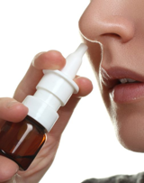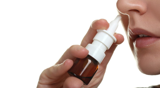 4. Håll för ena näsborren och sätt in sprayens topp i andra näsborren.